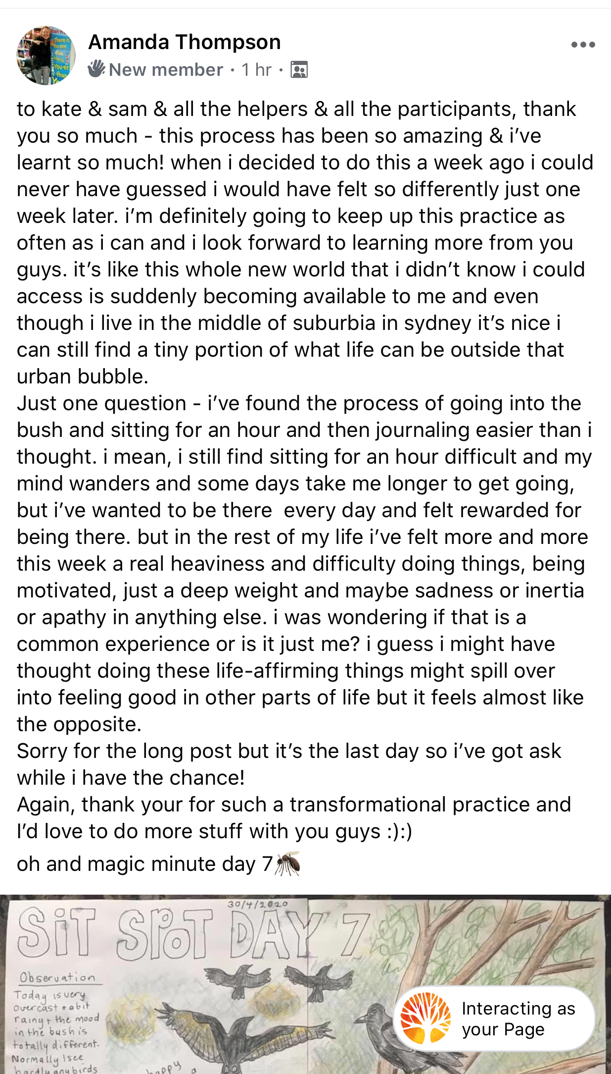 On top of this, joining the challenge means you'll have access to Nature Philosophy trained mentors, plus a private Facebook community of people who are learning about Sit Spots with you.